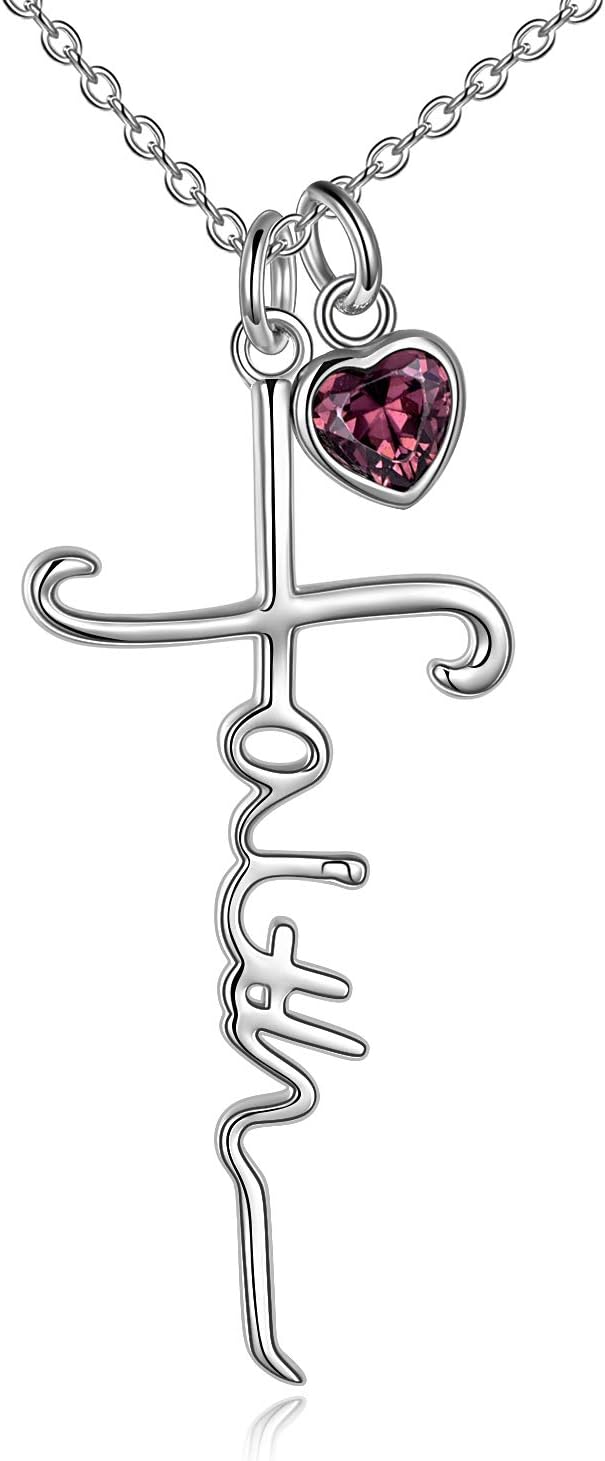 Faith Cross with Simulated Birthstone NecklaceThis faith cross necklace reminds you the strength of Faith Hope Love and Believing for God. This birthstone symbolizes Inner strength, invincible, balance, clarity and abundance. This faith cross necklace will be a nice gift for yourself or your lover.Whether its a birthday, a special occasion or just a ordinary day, jewelry is always a nice gift choice. This Faith Cross Necklace comes with a gift box, It's very suitable as Christmas, Hannukah, Mothers Day, Valentines Day, birthday gifts for yourself or for anyone you loved.Package information1 x Faith Cross Necklace1 x Necklace BoxHow to maintain Keep silver jewelry clean and dry. Silver jewelry should be placed in a sealed dry place when not in use.Best not to wear when taking a bath or swim. Regularly wipe the surface with polishing cloth.【UCADRIT】With the motto of "Fine, Creative, Funny".Our Jewelries focus on creating high quality and unique design sterling silver jewelry.Although our brand is young, we have a highly professional team that integrates design,production,photography,sales and service.All the products are manufactured at high level. Every detail is highly valued from concept to completion, to brings you each surprising and happiness moment in life.We hope every piece of Jewelry will bring our customers an surprising and happiness wearing experience.